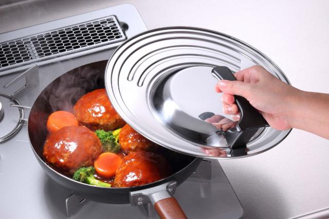 ![]() ステンレス蓋ガラス窓付き 18〜26cm | ![]() ステンレス蓋 18〜26cm |