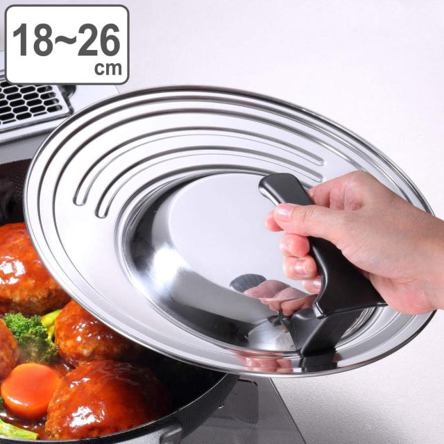 フライパン蓋 18〜26cm スタンド付き フリーサイズ鍋蓋 日本製 ( フライパンカバー 鍋蓋 兼用蓋 フタ 蓋 自立式 スタンド式 フライパンの蓋 鍋用 フライパン用 ステンレス製 ふた 鍋ふた )