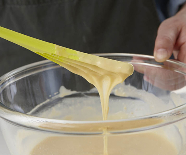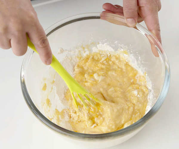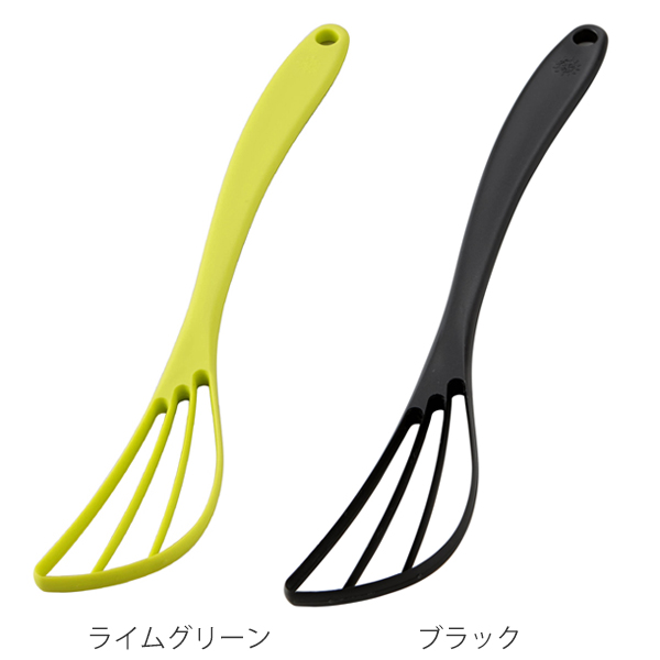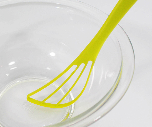 スリット状のかき混ぜ部分は、樹脂でするどいエッジになっているので、液体を切るように混ぜ合わせます。ダマができにくいので、パンケーキやお好み焼きの混ぜ合わせに便利です。