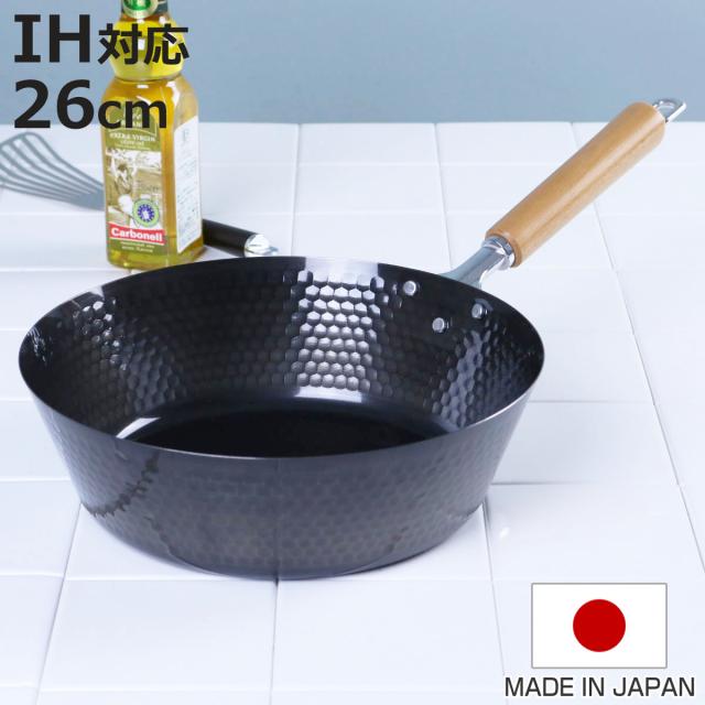 鉄フライパン 26cm IH対応 スゴ軽 槌目鉄深型フライパン 日本製 ( ガス火対応 鉄フライパン 深型フライパン 26センチ 鉄製フライパン 炒め鍋 いため鍋 軽量 槌目鍋 ディープパン 空焚き不要 オール熱源対応 )