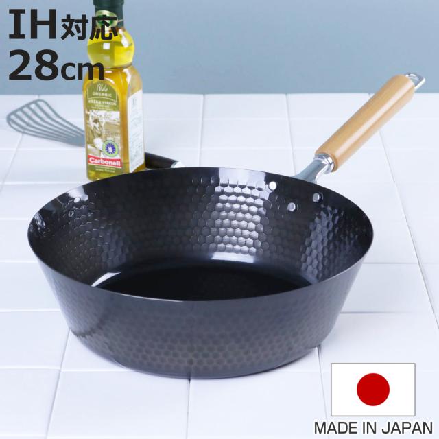 鉄フライパン 28cm IH対応 スゴ軽 槌目鉄深型フライパン 日本製 ( ガス火対応 鉄フライパン 深型フライパン 28センチ 鉄製フライパン 炒め鍋 いため鍋 軽量 槌目鍋 ディープパン 空焚き不要 オール熱源対応 )