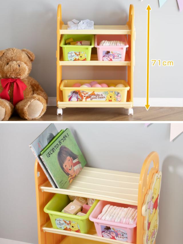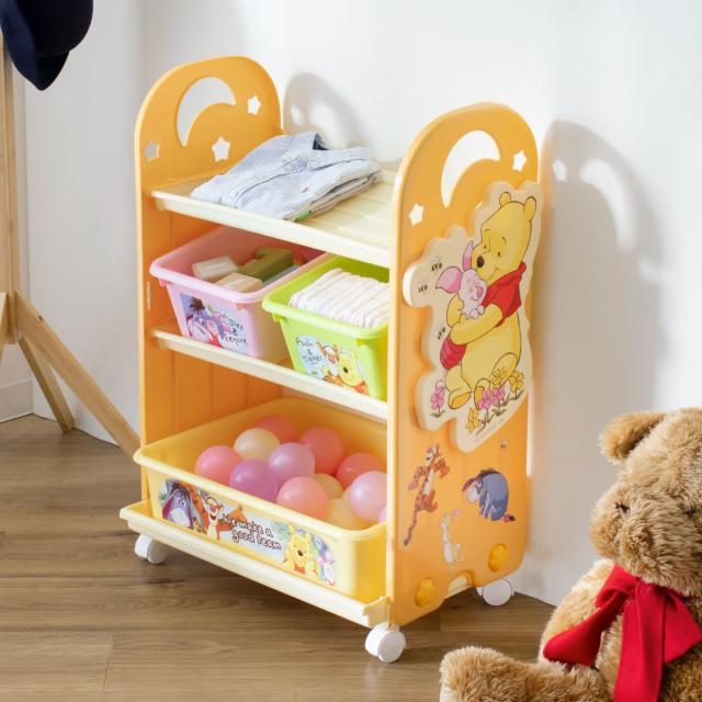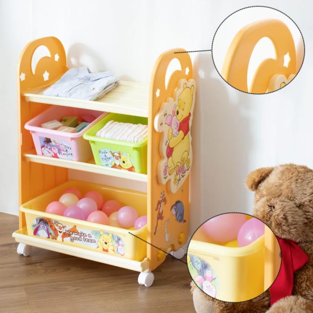 おもちゃ 収納ラック 3段 くまのプーさん トイステーション ( 収納 棚 収納ボックス おもちゃ箱 キャスター付き 絵本 ラック お片付け 子供部屋 ディズニー Disney プーさん pooh )