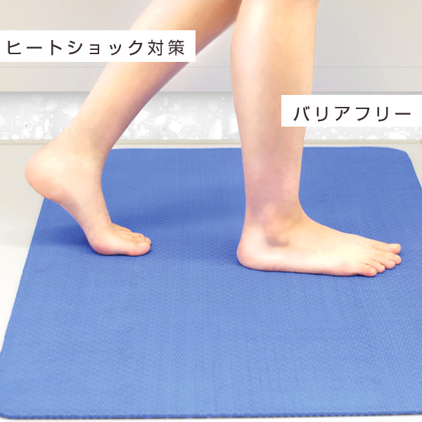 ヒートショック対策、バリアフリーにぴったりな滑りにくいお風呂場マットです。グリップ力に優れ、滑りにくい素材を使用していますので、滑り止めに効果を発揮します。薄型で、ドアの開閉を妨げず、つまずきにくい厚みです。また、床冷えを防いでヒートショックを予防します。