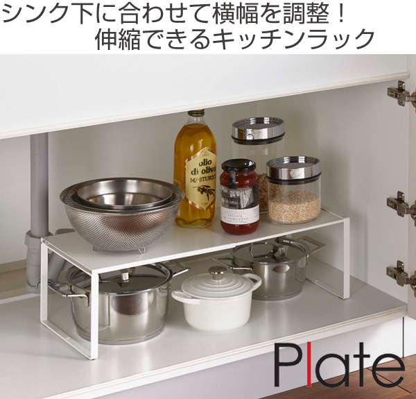 キッチンラック 伸縮収納棚 プレート Plate スチール製 幅36.5〜60cm ( シンク上収納 シンク下収納 カウンター上収納 キッチン収納 調味料収納 スパイスラック 整理棚 収納ラック スチールラック 卓上収納 山崎実業 )