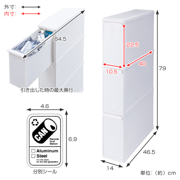 ゴミ箱 27L 3段 幅14cm スーパースリム 分別引き出しステーション ( ごみ箱 27リットル 9L 3分別 キッチン 省スペース スリム 隙間収納 引出し ダストボックス 縦型 隙間 収納 キッチン収納 分別 )
