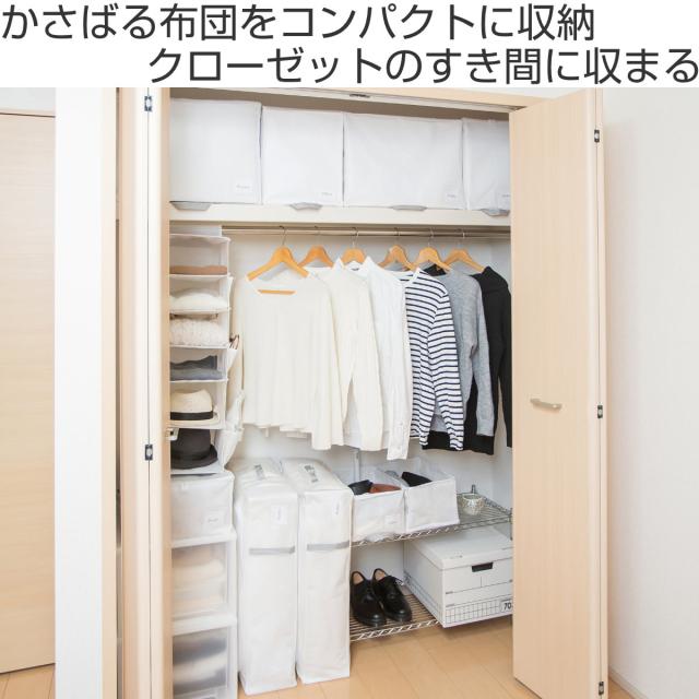 布団収納袋 シングル 掛け布団用 幅70×奥行50×高さ18cm すき間 クローゼット収納 ( 収納 布団 ふとん 収納袋 布団袋 布団収納ケース 毛布 隙間収納 収納ケース 不織布 すき間収納 クローゼット 隙間 ホワイト 白 タオルケット )