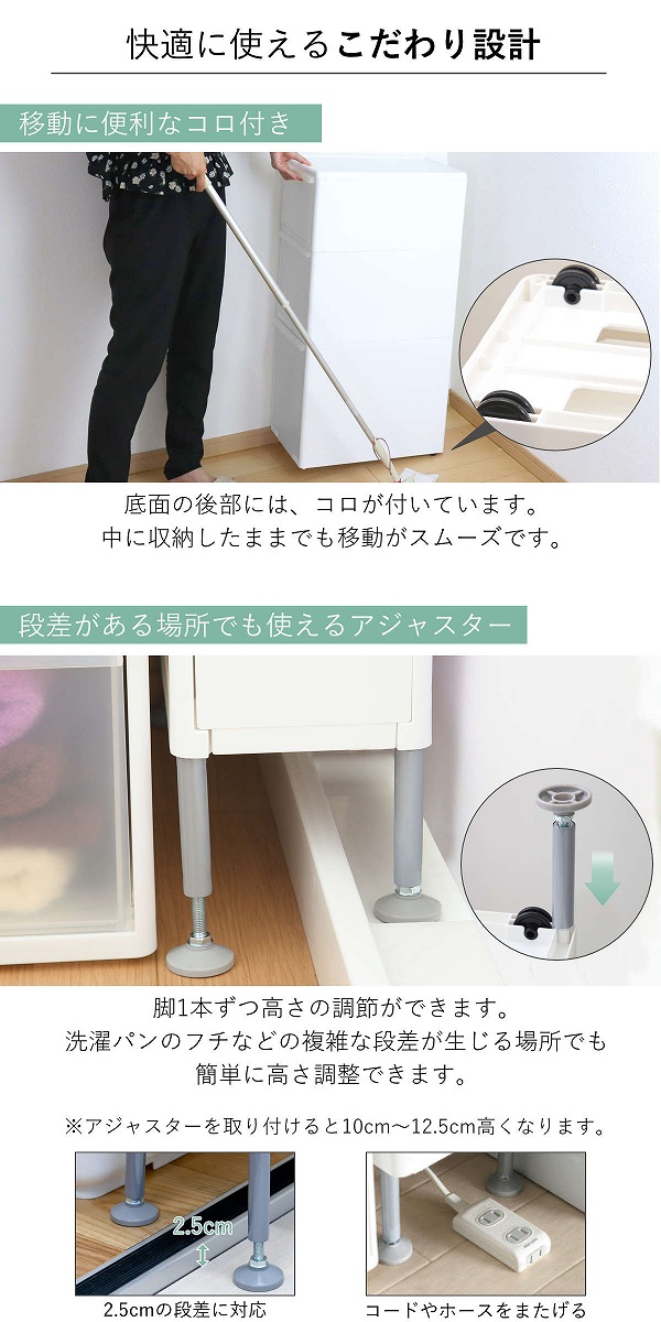 | 材質 | 本体・引き出し:ポリプロピレン アジャスター:ポリプロピレン、スチール |
