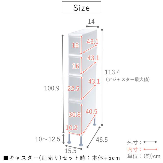 | サイズ | 約 幅15.5×奥行46.5×高さ100.9〜113.4(cm) |