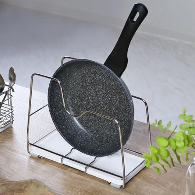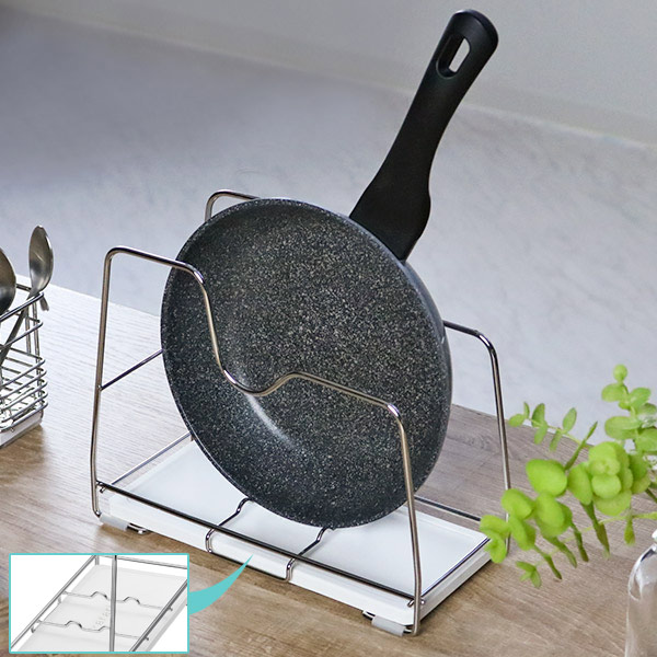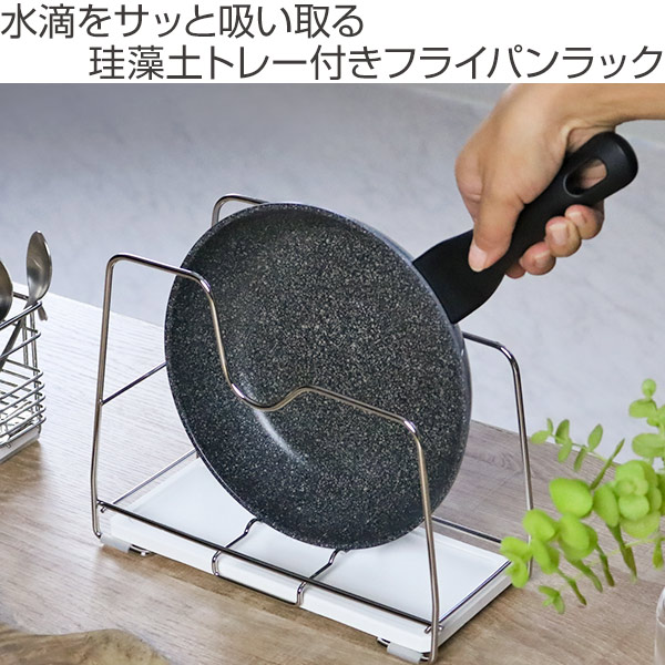 水滴をサッと吸い取る珪藻土トレー付きフライパンラック
