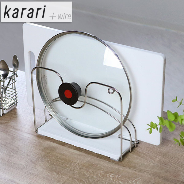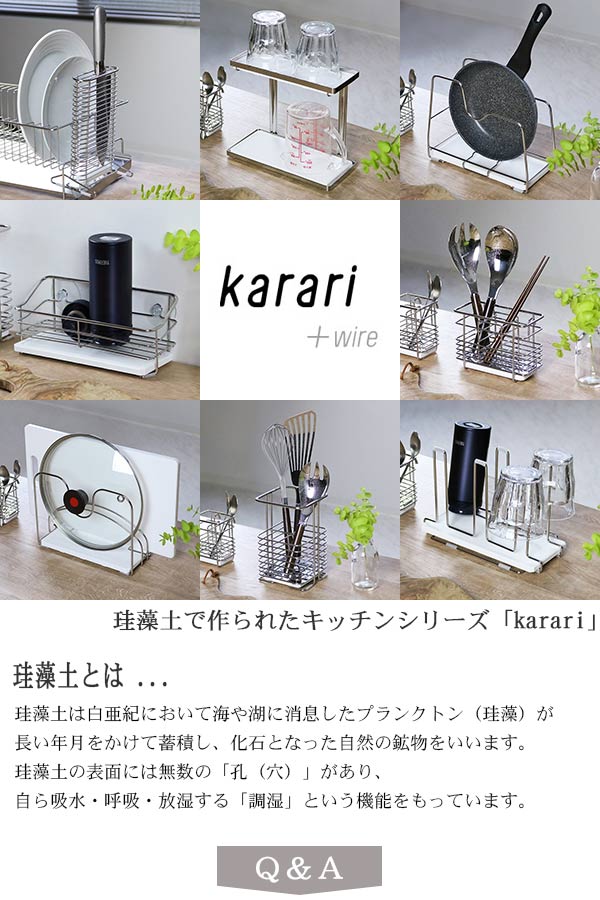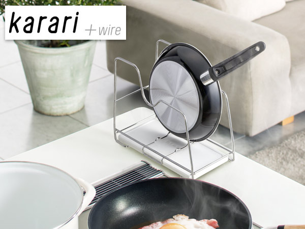 フライパンラック Karari+ワイヤー ( Karari カラリ 珪藻土トレー付き ステンレス 珪藻土 吸水 水切り 水切りラック フライパン収納 キッチンラック karari+ワイヤー フライパンスタンド フライパン用スタンド キッチン収納 )