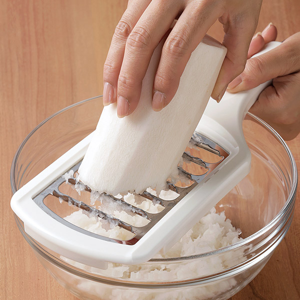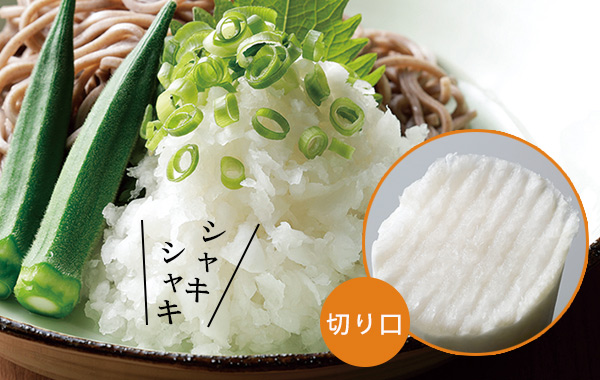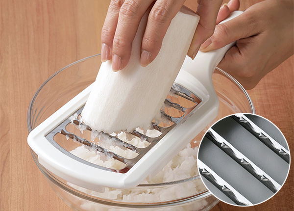 ●従来の鬼おろしで削るよりも、食物繊維を壊しにくく、シャキシャキ食感を味わえます。