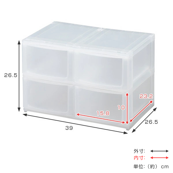 収納ケース 引き出し 幅39×奥行26.5×高さ26.5cm ワイド 深ショート4段 同色2個セット ( 収納ボックス プラスチック 小物 収納 積み重ね スタッキング ナチュラ ポスデコ 2列 2段 小物入れ 深型 幅広 仕分け 幅39 デスク収納 )