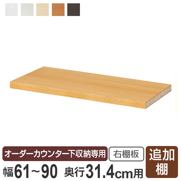 オーダーカウンター下収納専用 追加棚板 スリムタイプ 右棚板 幅61〜90cm用 ( オーダー 家具 セミオーダー 収納棚 扉付き 開き戸 本棚 棚 可動棚 リビング収納 キッチン収納 )