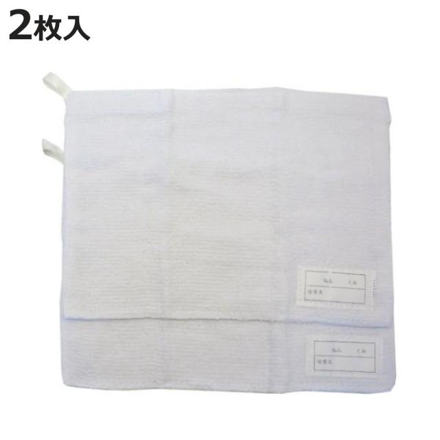 名前が書ける名札付き、吊り下げひも付きのスクール雑巾