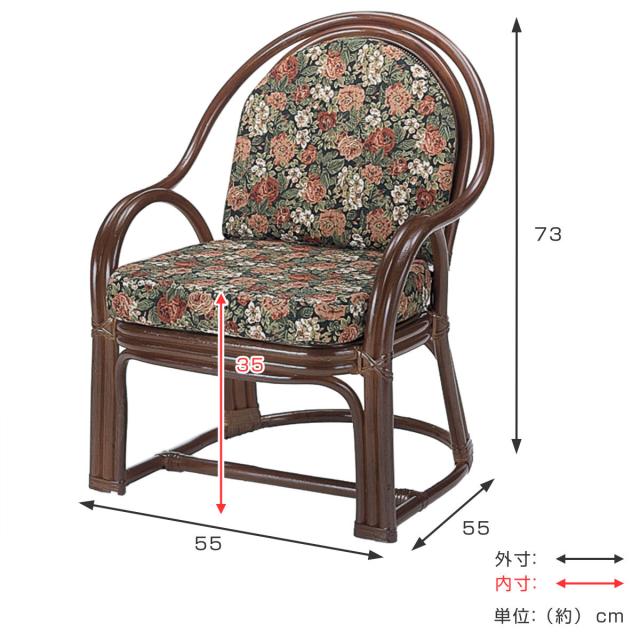 籐 アームチェア クッション付 座面高35cm ( 椅子 ラタンチェア ラタン製 パーソナルチェア 籐製座椅子 チェア リビングチェア 和モダン 和 アジアン 肘掛け付き クッション )