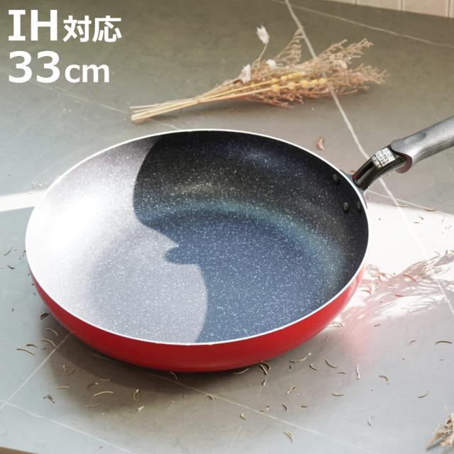 フライパン 33cm IH対応 超ビッグ マーブルダイヤモンドコート ( ガス火 IH 対応 浅型フライパン アルミフライパン 片手鍋 33センチ 大きい 炒め鍋 いため鍋 キッチンツール 調理器具 )