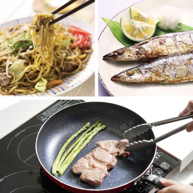 ●家族分の焼きそばや、さんまなどの長さのある素材も一度に調理ができます。