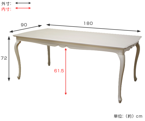 《4人用 四人用 6人用 六人用 180cm 180センチ 長方形 お洒落 おしゃれ リビング ダイニング ヨーロピアン エレガント クラシック 上品》