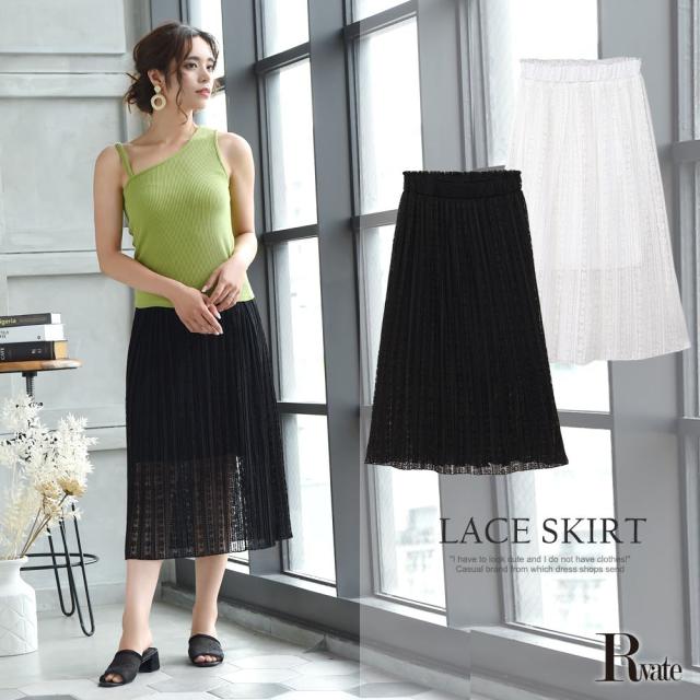 ☆長ミディ丈と程よいAラインシルエットで脚のラインが響きにくく細見せ効果も抜群なレーススカート♪