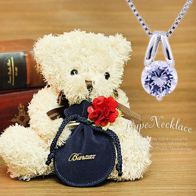 母の日 プレゼント 一粒ネックレス テディベア セット レディース ジルコニア くま アクセサリー 贈り物 白 ギフト プレゼント ぬいぐるみ クマ くま ネックレス ペンダント 記念日 誕生日 可愛い おしゃれ 女性 お母さん 嫁 母 祖母 30代 40代 シルバー 一粒 花以外