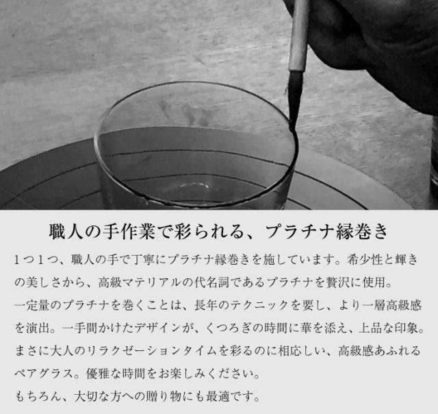 1つ1つ手作業で作られるグラスに、同じく手作業でプラチナの縁巻きを施した高級感あふれる逸品。