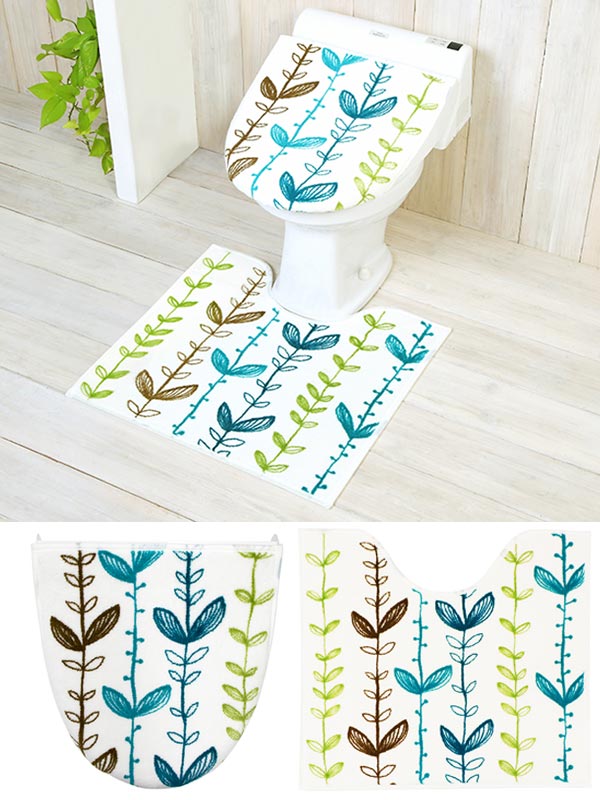 アイビー柄の優しいデザイン♪フタカバー&トイレマット