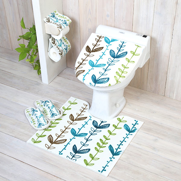 アイビー柄でトイレを明るい雰囲気にしてくれる、アイビーシリーズ。 フタカバーとマットの以外にも、スリッパ、ホルダーカバー、便座シートのご用意もあります。同じテイストで揃えれば、トイレがいっそう華やかになります。