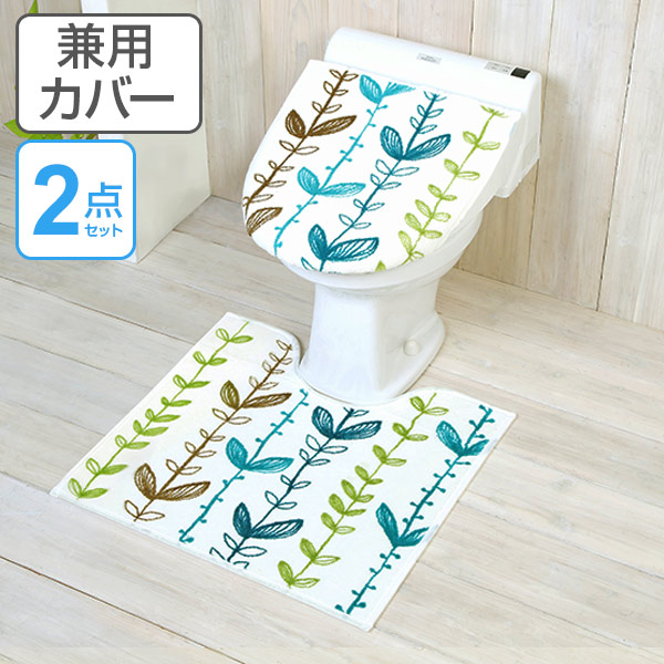 トイレマット フタカバー セット アイビー 洋式2点セット 兼用 ( トイレ マット ふたカバー トイレふたカバー 蓋カバー 洗浄 暖房 普通 2点セット トイレセット 洗える 滑り止め 55×60 長さ55 幅60 2点 トイレ用品 )