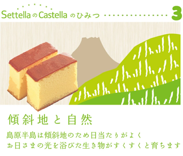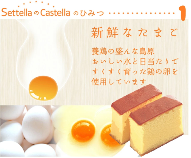 昔ながらの「 手焼き 」にこだわり、最高級 のザラメ糖や雲仙普賢岳のふもとで採れた新鮮 たまご などの厳選した材料を使用し、長崎の伝統の味を守り続けています。もちろん 無添加 です。