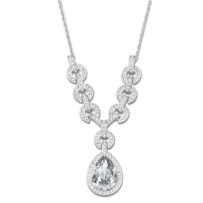 スワロフスキー『Adore ネックレス』です。クリスタルのパヴェで囲まれたドロップ形のブルーシェイドクリスタルをあしらった、ブルーのきらめきが美しいネックレス。クリスタルのパヴェで輝くチェーンのリングを飾っており、このロジウム・コーティングを施したクラシカルなデザインにトレンドの雰囲気を加えています。