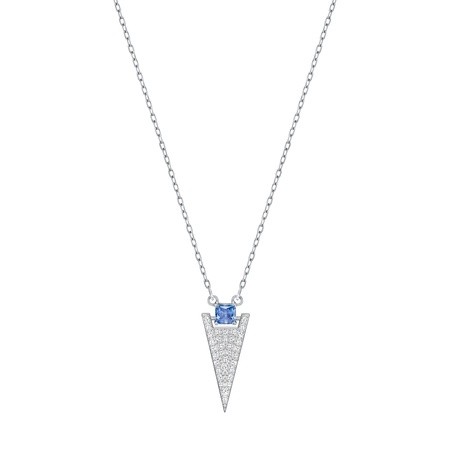 スワロフスキー『Funk ネックレス』です。トレンドのトライアングルやV字シルエットを捉えたネックレス。ロジウムコーティングを施しています。ブルーの1粒クリスタルやクリスタルパヴェのまばゆい輝きで、装いに洗練された印象をプラスします。