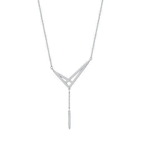 スワロフスキー『Fine ネックレス』です。知的でエレガントな印象のネックレス。フロントのモチーフには、クリアクリスタルのパヴェとロジウムコーティングを施しています。垂れ下がるバー型のチャームが装いを表情豊かにします。