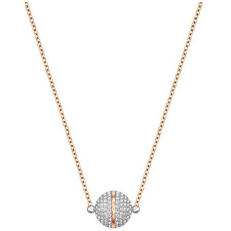 スワロフスキー『Foam ネックレス』です。天体の軌道からインスピレーションを得てデザインされた存在感のあるネックレス。パヴェが施されたボールの中に、ローズゴールドのマグネット式留め具が隠れています。長さは後ろで調節できます。クールで洗練された印象のクリアクリスタルとローズゴールドコーティング。