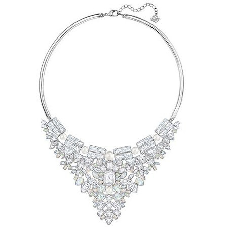 スワロフスキー『Festivity Large ネックレス』です。存在感漂うパラジウムコーティングのネックレス。クールなカラーのクリスタル・パールとジオメトリックカットを施したクリスタルが、魅惑的にきらめきます。 トレンド感のあるシャツに合わせたスタイルや、夜のお出かけにぴったりなワンピースとの華やかなスタイルにも。