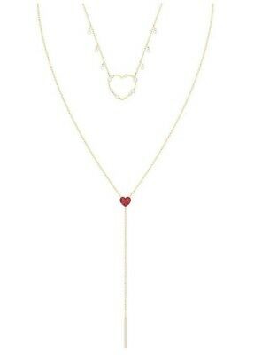 スワロフスキー『OXO ネックレス』です。Oxo ネックレスはバレンタインデーのプレゼントにぴったりです。ゴールドコーティングが施されたダブルレイヤードのデザイン。短いチェーンにはオーバーサイズの繊細なハートを、長いチェーンには鮮やかなレッド・クリスタルのハートがあしらわれています。クリスタルのパヴェがスワロフスキーらしい輝きです。Lovely やOptimal シリーズのアイテムとミックス&マッチも素敵で、さらにロマンチックなスタイルを楽しめます。