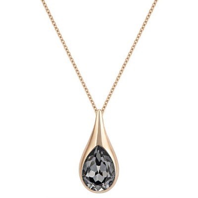スワロフスキー『Drop ペンダント』です。エレガントでフェミニンな美しいローズゴールドコーティングペンダント。ドーム型のメタルに埋め込まれ一体化したブラッククリスタルが特徴です。ピュアでモダンなデザインが、どんなお出かけスタイルにも洗練されたトレンド感を与えます。