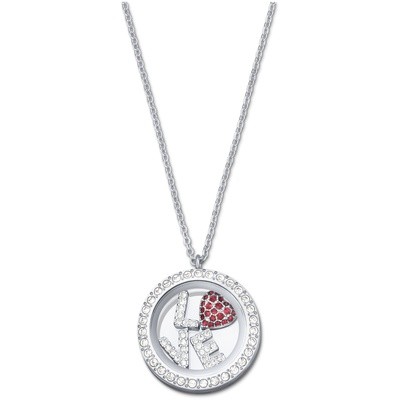 スワロフスキー『Treasure Locket ペンダント』です。クリスタルのパヴェで飾られた、遊び心いっぱいのラウンド型ロケットペンダント。表面は開くことができ、中にはクリアクリスタルをあしらった「L」「V」「E」の文字と、ライトシャムクリスタルをあしらったハートのモチーフが入っています。モチーフは取り替えが可能です(替りのモチーフのセットを別途販売)。チェーンはロジウムコーティングを施しています。