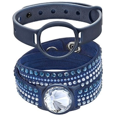 スワロフスキー『Slake Deluxe Activity Crystal セット』です。Activity Crystal(ラウンド型クリスタルパーツ)に合わせて特別に作られた、防水性のある2つのブレスレットセット。スワロフスキー独自のカットを施したクリアのActivity Crystalは、あなたの活動と睡眠を測定し、スマートフォンとの同期が可能。滑らかで機能的なブルーのスポーツバンドと、ブルーのアルカンターラ〓(人工皮革)にクリスタルがきらめくおしゃれなデザインをお楽しみください。バッテリーとブルーのベルベット製のポーチ付き。こちらはMisfit社のShineにもお使いいただけます。Activity Crystalは防水50メートル、潜水以外の水中スポーツに適応しています。