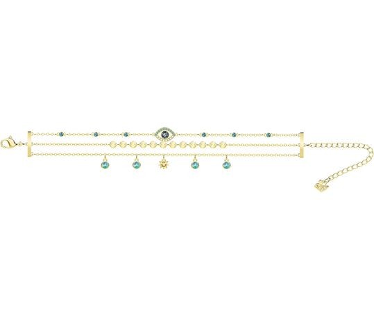 スワロフスキー『Last Summer ブレスレット』です。夏の魅惑的なスタイルに、ボヘミアンなまばゆいきらめき与えるブレスレット。ゴールドコーティングとターコイズのクリスタルの魅力的な組み合わせに、神秘的でシンボリックなモチーフが揺れます。明るくフェミニンな魅力あふれるデザインです。