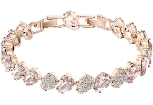 スワロフスキー『MIX ブレスレット, M』です。繊細なファンシーカットのピンク・クリスタルや独自のポインティアージュ〓という技法を駆使したどの角度から見てもきらめきを楽しめるブレスレット。ローズゴールドカラーのスワロフスキーのウォッチと合わせて女性らしいスタイルにするのもおすすめです。