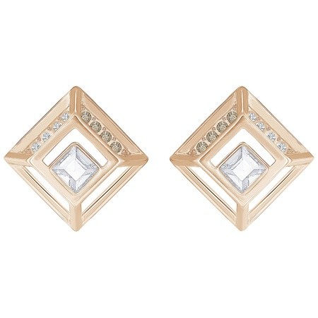 スワロフスキー『Hillock ピアス』です。あらゆる装いにマッチする繊細でモダンなピアス。ローズゴールドコーティングを施した四角形を重ねたようなデザインには、ツートーンに輝くクリスタルのパヴェとファンシーストーンをあしらっています。スタイリッシュで何度も身に着けたくなり長く愛用していただけそうなアイテムです。