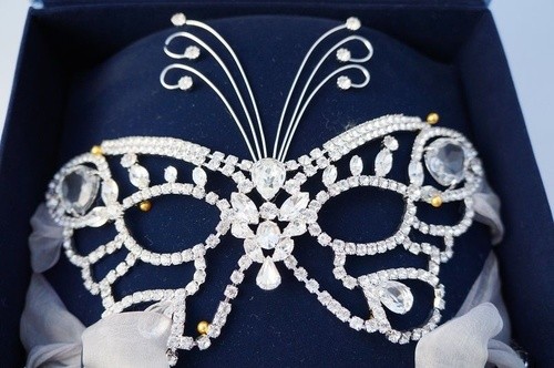 スワロフスキー 限定品 『バタフライマスク』です。さまざまな大きさやカットのクリアクリスタルで蝶のシルエットを作り上げたマスク。パーティーなどの華やかなシーンにも最適。世界で限定2500個の大変希少なアイテムです。