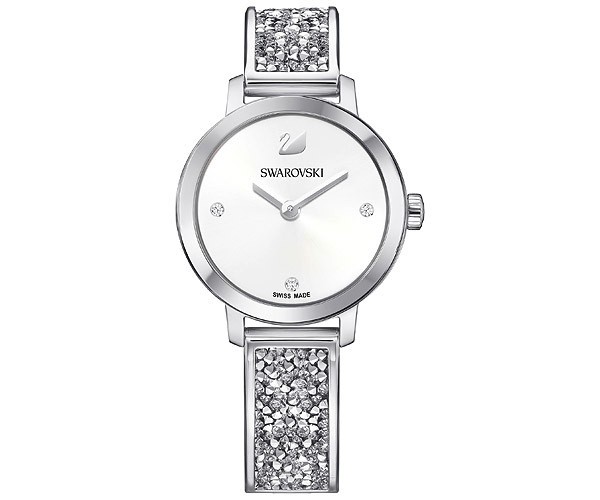 スワロフスキー 『COSMIC ROCK ウォッチ』です。ウルトラファイン・クリスタル・ロック技法を初めて使い、ふんだんにあしらったシルバーのクリスタルがモダンな美しさと名高い品質とを兼ね備えたウォッチ。ブレスレットは簡単に長さが調節ができ手首にフィットするデザインです。ケース:ステンレススチール/文字盤:3個のクリスタル付/バングル:クリスタル付ステンレススチール/フェイス直径:29 mm/50m防水/スイス製