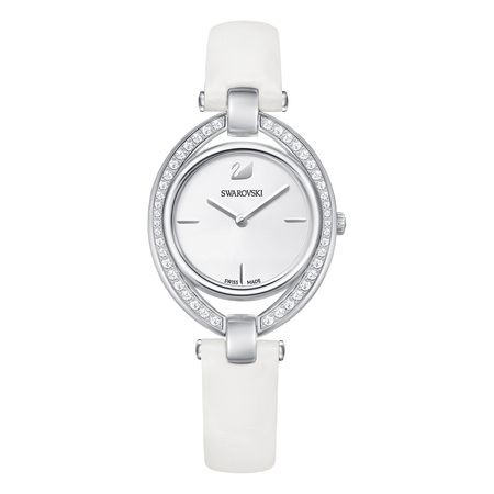 スワロフスキー『STELLA ウォッチ』です。洗練されたウォッチをお探しの方におすすめの新しいStellaシリーズ。ラグジュアリーで上品な細身のデザインは、昼でも夜でもどんなシーンにもぴったり。オーバル型のラグにクリアクリスタルのパヴェをあしらい、フェミニンなスタイルに仕上げました。ケース:約44個のクリスタル付ステンレススチール/ストラップ:レザー/フェイス直径:29x35 mm/30m防水/スイス製