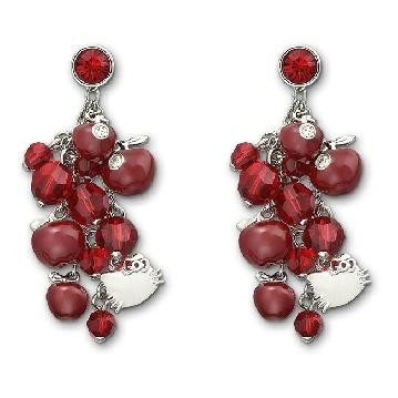 スワロフスキー『ハローキティ Hello Kitty Glamour ピアス』です。モダンで魅力的なピアス。ライトシャムクリスタルと赤いリンゴのモチーフを房状にあしらっています。よく見ると、ハローキティの顔が現れます。吊り下げられたパーツは取り外し可能。