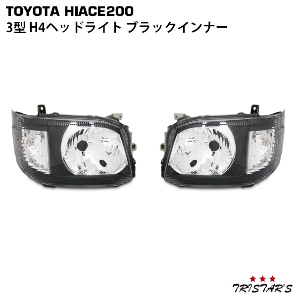 ハイエース レジアスエース 200系 3型 クリスタルヘッドライト ブラックインナー H4ハロゲン用 左右セット 343