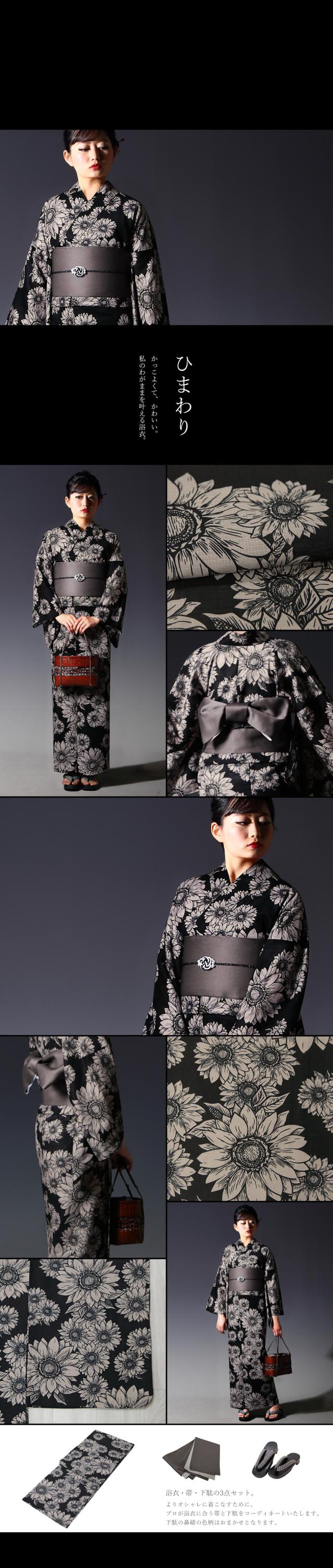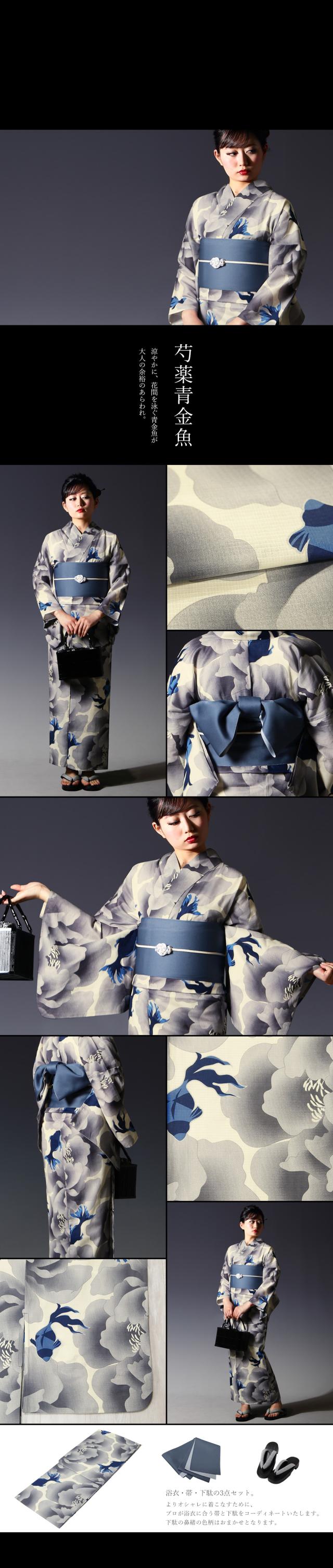 こちらの商品は、浴衣・帯・下駄の3点セットです。セット内容の一部変更や、値引きは承ることができません。