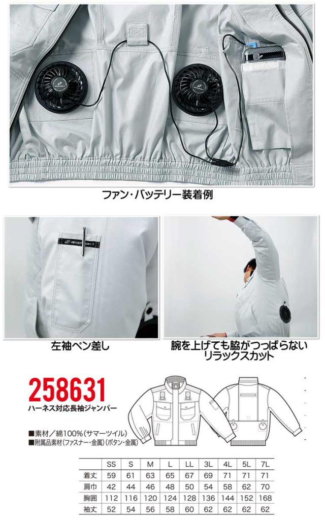 クロダルマ エアセンサー1 フルハーネス対応長袖ジャンパー(ファンなし) 258631