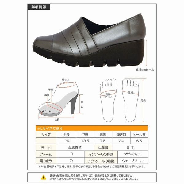 | 22.0cm 22.5cm 23.0cm 23.5cm 24.0cm 24.5cm ヒールの高さ:約 6cm 前底の高さ:約 1.5cm |