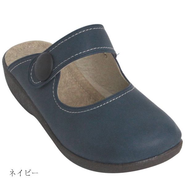 | 日本製のサッと履ける、ゆったり3E相当のサボシューズです。 つま先に向かってゆったりとした設計なので、足先も楽に履いていただけます。 フェイクの甲ベルトと大振りボタンがデザインのポイントです。 3E相当なので幅もゆったりで、幅広や甲高の方にもおすすめです。 カラーはナチュラル感のある落ち着いた色味で、キャメル、レンガ、オーク、ネイビー、ブラックの全5色のラインナップです。 |
